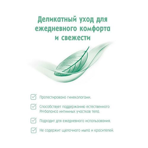 Экстракт ромашки бережно очищает и дарит ощущение свежести. Мягкая формула с молочной кислотой поддерживает естественный уровень pH, ухаживает за кожей в течение всего дня. Не содержит щелочного мыла и красителей. Одобрен гинекологами и дерматологами.