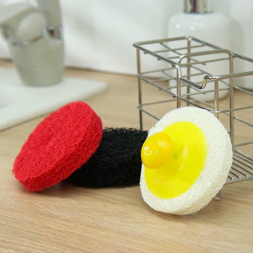 Губка для посуды абразивная с ручкой, 8×8 см, 2 сменные насадки в комплекте, цвет МИКС