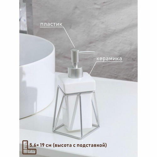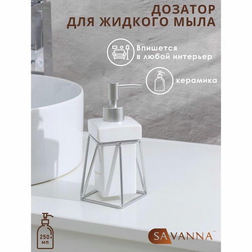 Дозатор для жидкого мыла на подставке SAVANNA «Геометрика», 250 мл, цвет серебристый