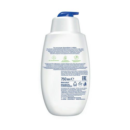 Крем - гель Nivea для душа "Нежное увлажнение" с ценным маслом миндаля 750мл