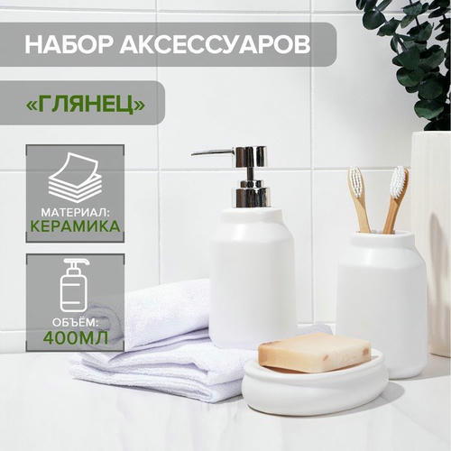 Набор аксессуаров для ванной комнаты SAVANNA «Глянец», 3 предмета (мыльница, дозатор для мыла, стакан), цвет белый