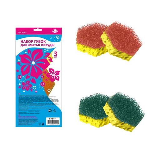 Универсальная двухслойная губка подойдет для мытья любой посуды. Мягкий слой хорошо намыливается, создает пену и оттирает несильные загрязнения. Жесткий слой очищает посуду от более стойких загрязнений, таких как пригоревший жир, присохшие корочки и т.д. Подходит для посуды с антипригарными покрытиями.