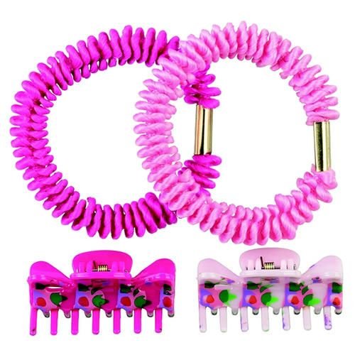 В состав набора входят 4 цветные заколки-«крабик» и 4 плотные резинки в тон.