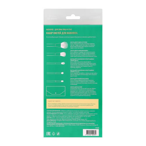 Набор кистей для макияжа `DECO.` GREEN COUTURE в чехле 5 шт