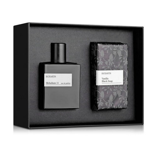Bioearth Meludium 11 for Him — мужской парфюмированный набор, обладающий благородным цветочно-древесным ароматом, который воплощает растительное изобилие Тоскано-Эмилианских Апеннин. Композиция парфюма, сотканная из аккордов спелых средиземноморских фруктов, жасмина, розы, анималистического акцента кожи и мистического ладана, дарит ощущение роскоши и изобилия. Экологически чистое мыло с пьянящим запахом черной ванили благодаря высокому содержанию растительных компонентов выводит на новый уровень комфорта повседневные водные процедуры, помогая избежать сухости и стянутости кожи.