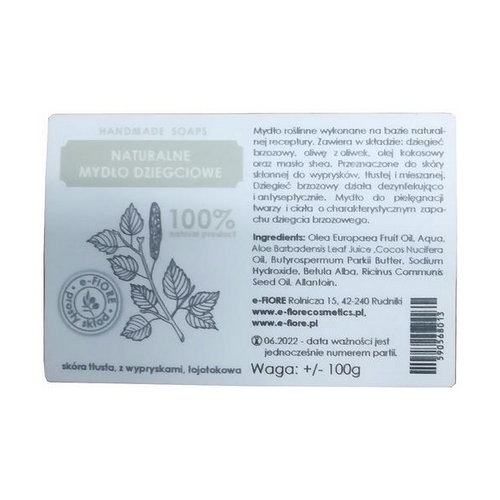 Натуральное дегтярное мыло от бренда E-Fiore отлично подходит для ежедневного применения как для ухода за кожей, так и за волосами. Продукт популярен своими ранозаживляющими и анестезирующими действиями, что делает его универсальным в уходе за собой. Средство изготовлено из органических компонентов, среди которых березовый экстракт, масла оливы, кокоса и карите. Мыло активно помогает при лечении угревой сыпи, акне, псориазе, себорее, грибковых инфекциях, стимулирует кровообращение и очищает от инфекций.