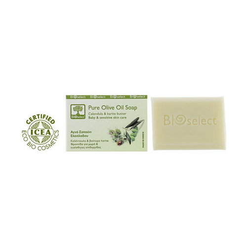 Мыло от бренда BIOselect — ценный кладезь натуральных ингредиентов. Его активная формула разработана ведущими грецкими экспертами по традиционной технологии на основе натуральных масел оливы и карите, а также экстракта календулы. Благодаря этим компонентам продукт бережно и мягко очищает кожу от накопленных загрязнений и остатков кожного жира.