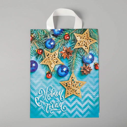 Новый год. Пакет “Новогодняя лазурь”, полиэтиленовый с петлевой ручкой, 28х35 см – 25 шт.