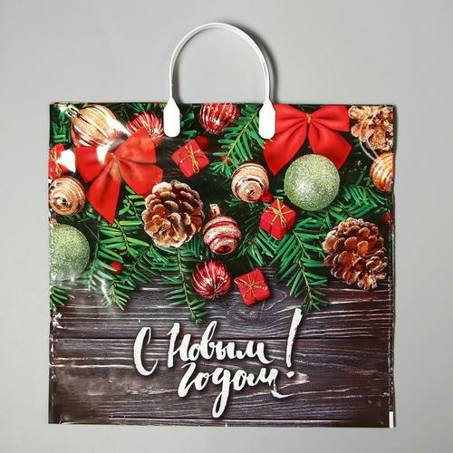 Новый год. Пакет “Рождественские бантики”, полиэтиленовый с пластиковой ручкой, 38х35 см – 10 шт.