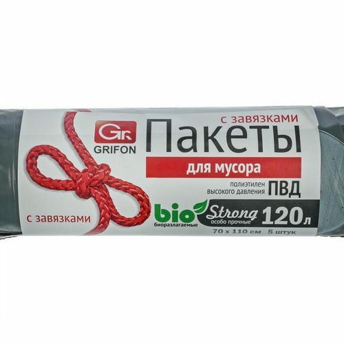 Пакеты для мусора с завязками, особо прочные, 120 л, рулон 5 шт