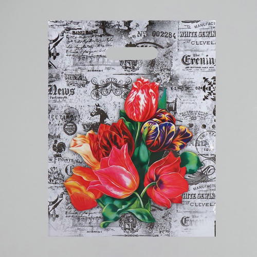 Пакет полиэтиленовый с вырубной ручкой, прочный с оригинальным рисунком.