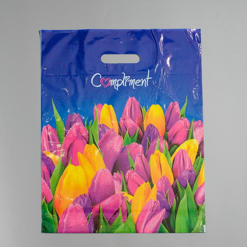 Пакет полиэтиленовый с вырубной ручкой, прочный с оригинальным рисунком.