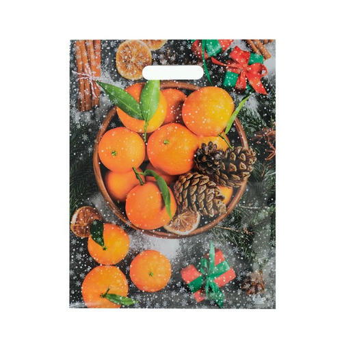 Пакет "Мандарины", полиэтиленовый с вырубной ручкой,л 40 х 31 см, 60 мкм - 10 шт.