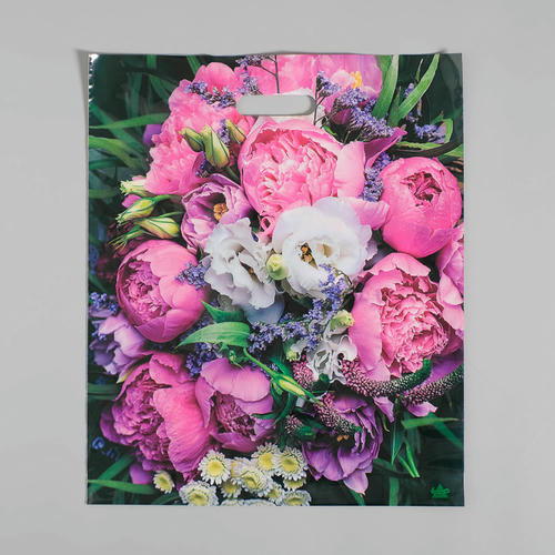 Пакет “Пионы”, полиэтиленовый с вырубной ручкой, 38 х 45 см, 60 мкм – 50 шт.