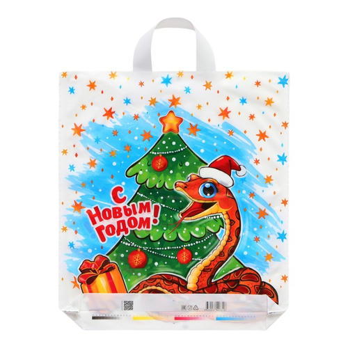 Пакет новогодний, полиэтиленовый с петлевой ручкой – это идеальное решение для упаковки подарков в преддверии Нового года. Этот пакет изготовлен из прочного и качественного полиэтилена, который обеспечивает надежную защиту содержимого от влаги и пыли.
