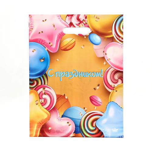 Пакет “С праздником”, полиэтиленовый с вырубной ручкой, 30х39,5 см, 60 мкм – 50 шт.