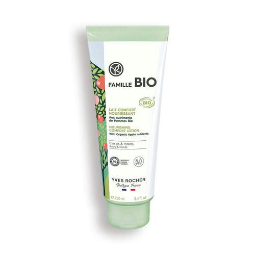 Молочко-Комфорт надолго увлажняет, интенсивно питает, защищает кожу тела и рук от агрессивных внешних воздействий и в дальнейшем помогает противостоять им благодаря активным ингредиентам (фруктовой воде и экстрактам), полученным из Яблок БИО.
