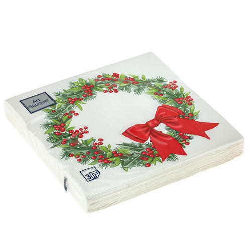 Салфетки бумажные декоративные Art Bouquet 33*33, 3хсл, 20л. “Венок с бантиком”
