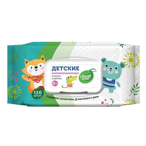 СВЕЖАЯ НОТА Влажные детские салфетки, ВОССТАНАВЛИВАЮЩИЕ , с аллантоином, Д-пантенолом и цинком, 120 шт.
