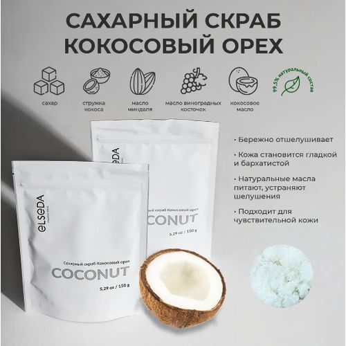 Сахарный скраб кокосовый орех 150 г. Дой-пак упаковка