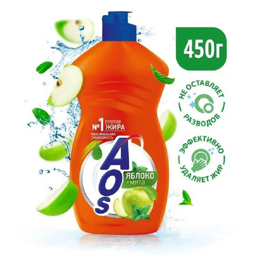 Средство для мытья посуды AOS Яблоко + мята, объем: 450гр