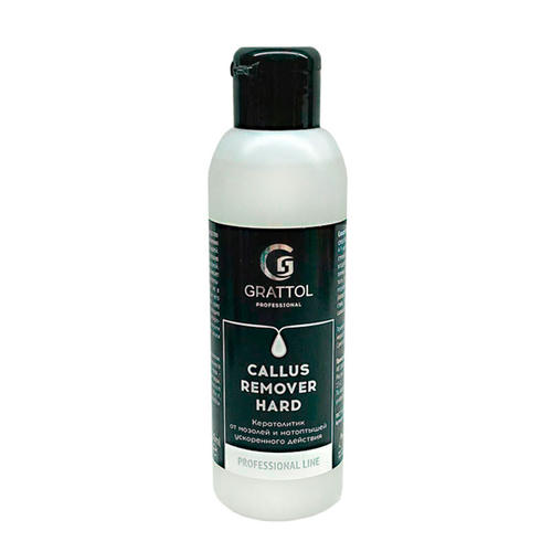 Кератолитик Grattol Hard Callus Remover, 150мл. на основе щёлочи глубоко проникает в ороговевшую кожу, размягчает и разрушает её.