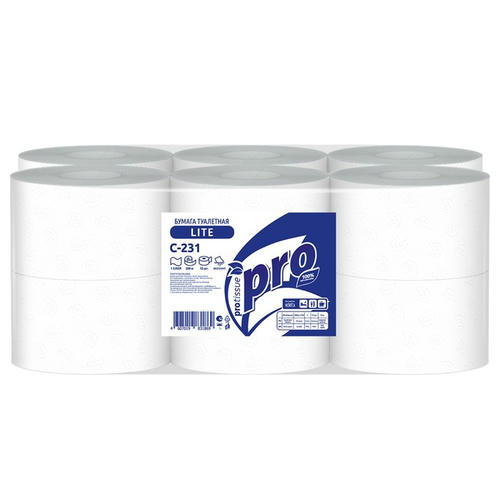Туалетная бумага PROtissue С231, 1-слойная с тиснением, 200 м, без перфорации