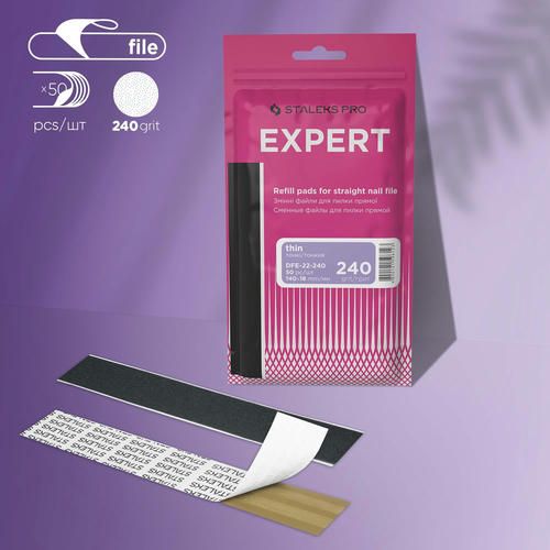 Использование одноразовых сменных файлов Staleks PRO Expert – безопасно. После каждого клиента наклейка заменяется новой, а основа — дезинфицируется и стерилизуется чтобы допустить распространения инфекции. Использовать сменные файлы удобно благодаря самоклеящейся основе – файлы моментально наклеиваются на металлическую пилку и не смещаются во время работы, не размокают в воде.