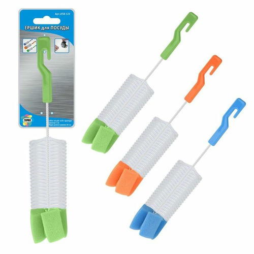 Порой без специальных приспособлений невозможно эффективно помыть посуду с узким горлышком, это касается бутылок, ваз, бокалов и банок. Ершик для посуды «Комби» поможет справиться даже со стойкими загрязнениями на внутренней стороне. Каркас сделан из металлической проволоки, сама щетка изготовлена из синтетической щетины, губка – из пенополиуретана. Ручка имеет специальную форму, чтобы было удобно вешать ершик на крючок.
