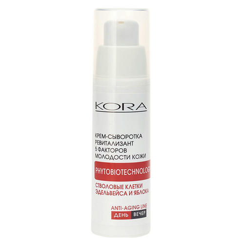 KORA, Крем-сыворотка ревитализант 5 факторов молодости кожи ANTI-AGE, 30 мл