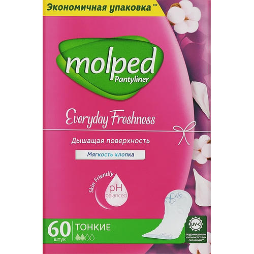 Мастера популярного турецкого бренда Molped знают, как важно для современных женщин чувствовать комфорт и уверенность в себе в течение всего дня, поэтому создают великолепные ежедневные прокладки Daily No Perfume Super Eco. Для тех, кто не любит часто ходить по магазинам и уверен в сделанном единожды выборе, они создали объемную пачку, в которую входят 60 прокладок.
