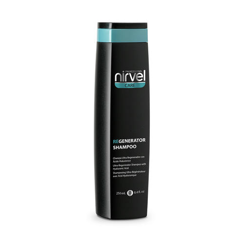 Бессульфатный восстанавливающий шампунь Regenerator Shampoo от Nirvel Professional с гиалуроновой кислотой обеспечивает глубокое увлажнение и объем волос, повышает их плотность и гладкость.