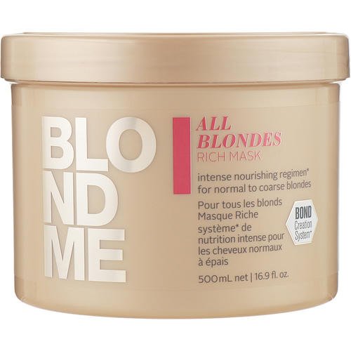 Отбросьте все страхи и плените всех роскошным сияющим светлым оттенком волос! Новая линейка BlondMe, представленная брендом Schwarzkopf Professional, создана, чтобы удовлетворить все потребности разного типа волос. Продукты для ухода BlondMe разработаны для работы в сочетании со средствами для окрашивания этой же серии, благодаря чему можно достичь безупречного результата на осветленных или натуральных прядях за счет технологии 3D-бондинг. Обогащенная маска с протеиновым комплексом кашемира — это идеальный уход для всех типов волос, она восстанавливает оптимальный уровень увлажнения в структуре локонов, наполняя их энергией и здоровым блеском.