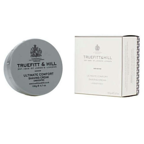 Truefitt and Hill Ultimate Comfort Shaving Cream – крем для бритья. Образует обильную пену. Масло лаванды обладает бактерицидными и успокаивающими свойствами, стимулирует регенерацию кожи. Идеально подходит для чувствительной кожи.Активные компоненты: эфирное масло лаванды, глицерин.