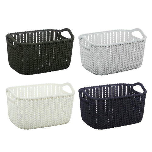 Пластиковая вязанная корзина 24х16х14 см предназначена для хранения самых разных вещей — аксессуаров, белья, пряжи и предметов рукоделия, детских игрушек и туалетных принадлежностей. Для удобной переноски изделия предусмотрены боковые ручки. 5 причин купить пластиковую корзину: • стильный дизайн — эффект мелко вязаного полотна, • пара эргономичных ручек для удобной переноски, • компактные габариты и оптимальная вместимость, • идеально подходит для хранения разнообразных бытовых вещей, • в коллек