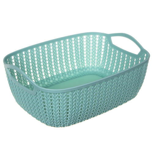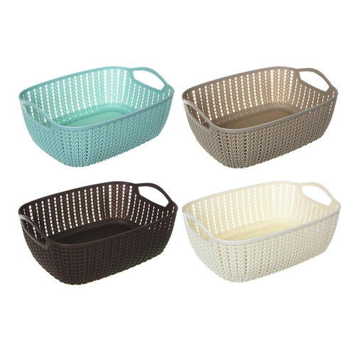 Пластиковая вязанная корзина 29х21х10,5 см предназначена для хранения самых разных вещей — аксессуаров, белья, пряжи и предметов рукоделия, детских игрушек и туалетных принадлежностей. Для удобной переноски изделия предусмотрены боковые ручки. 5 причин купить пластиковую корзину: • стильный дизайн — эффект мелко вязаного полотна; • пара эргономичных ручек для удобной переноски; • компактные габариты и оптимальная вместимость; • идеально подходит для хранения разнообразных бытовых вещей; • в кол